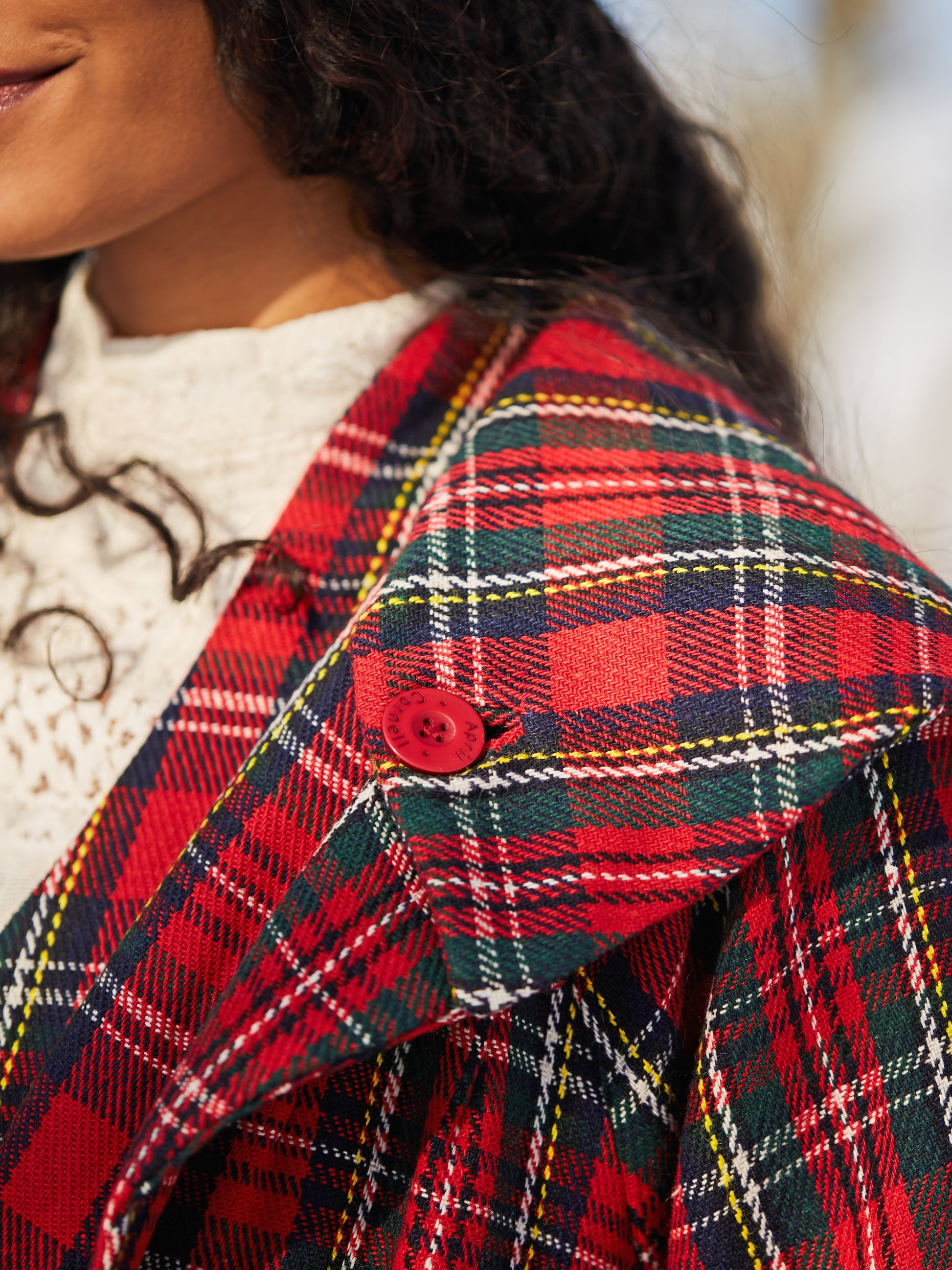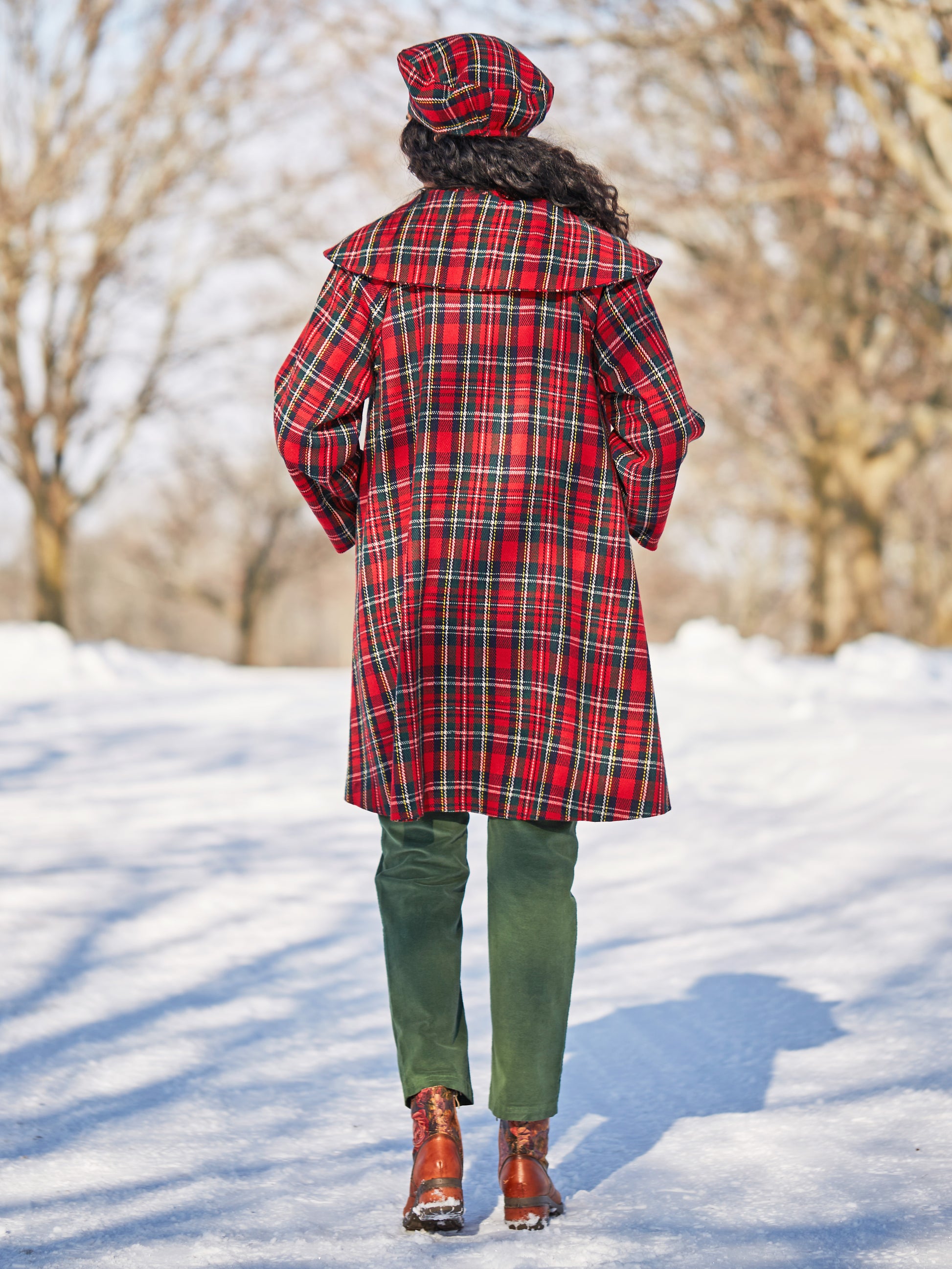 A coat as warm and wonderful as the women we serve! Fabulous yarn dyed wool plaid lined in poly silk and styled with welt pockets and April's artful accents— sledding anyone?