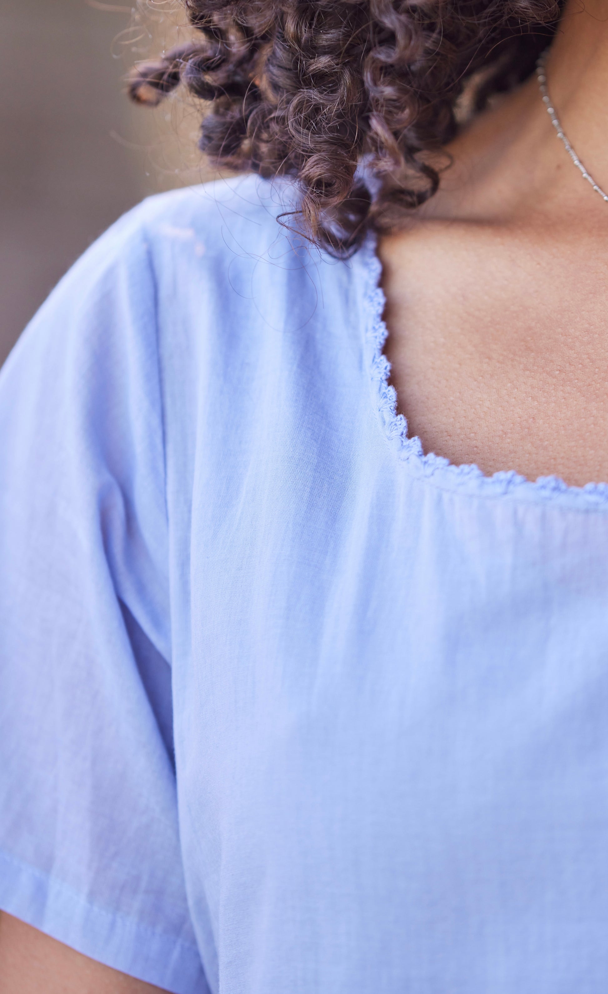 - Delicate crochet trim along neckline