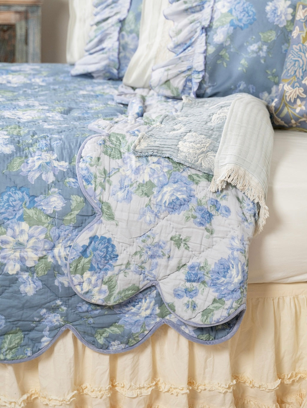 - A hand quilted soft voile cotton, trimmed with scalloped cotton velvet piping that will surround you in comfort as you nestle in for warmth