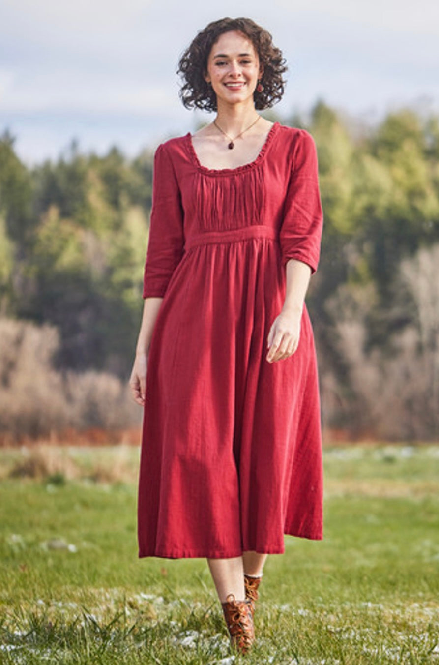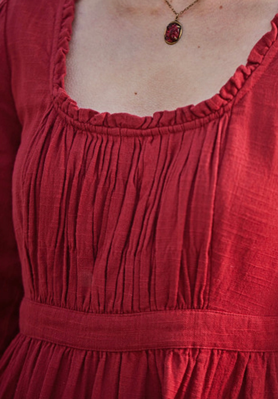 How amazing is this? Super saturated textured cotton lined in voile and fashioned with a ravishing ruffle, flattering gathers on the bodice and self fabric ties for a custom silhouette.