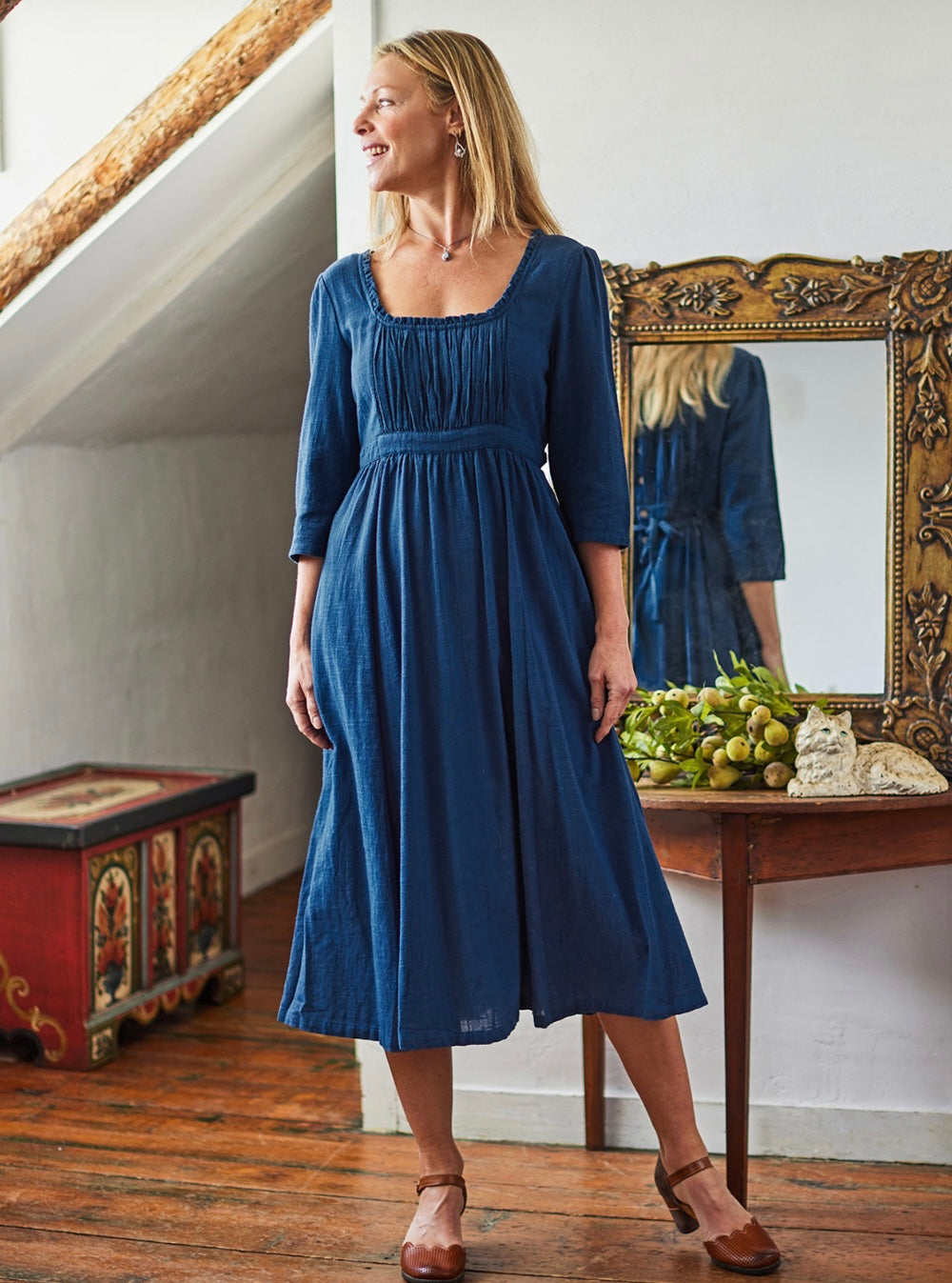 April Cornell Jane Austen Cotton Dress Cadet Blue
