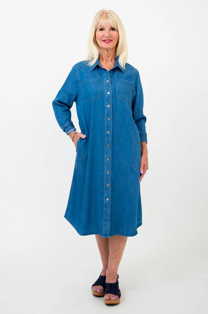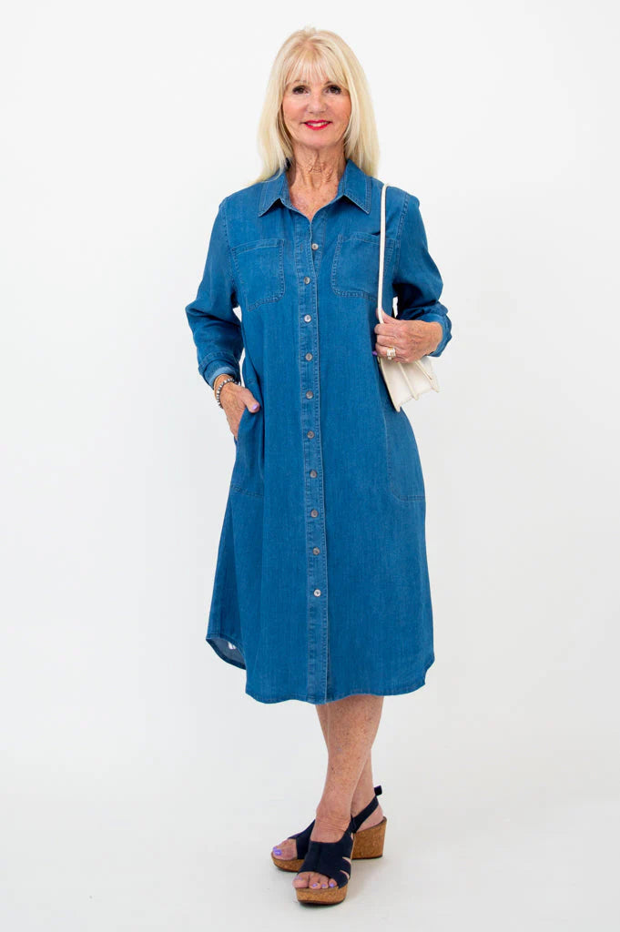 Designed with meticulous attention to detail, the Anka features a front button closure for a polished look, while its hem gracefully falls at mid-calf, adding an elegant touch to any ensemble. The long sleeves and shirt collar exude classic charm, ensuring effortless refinement with every wear.