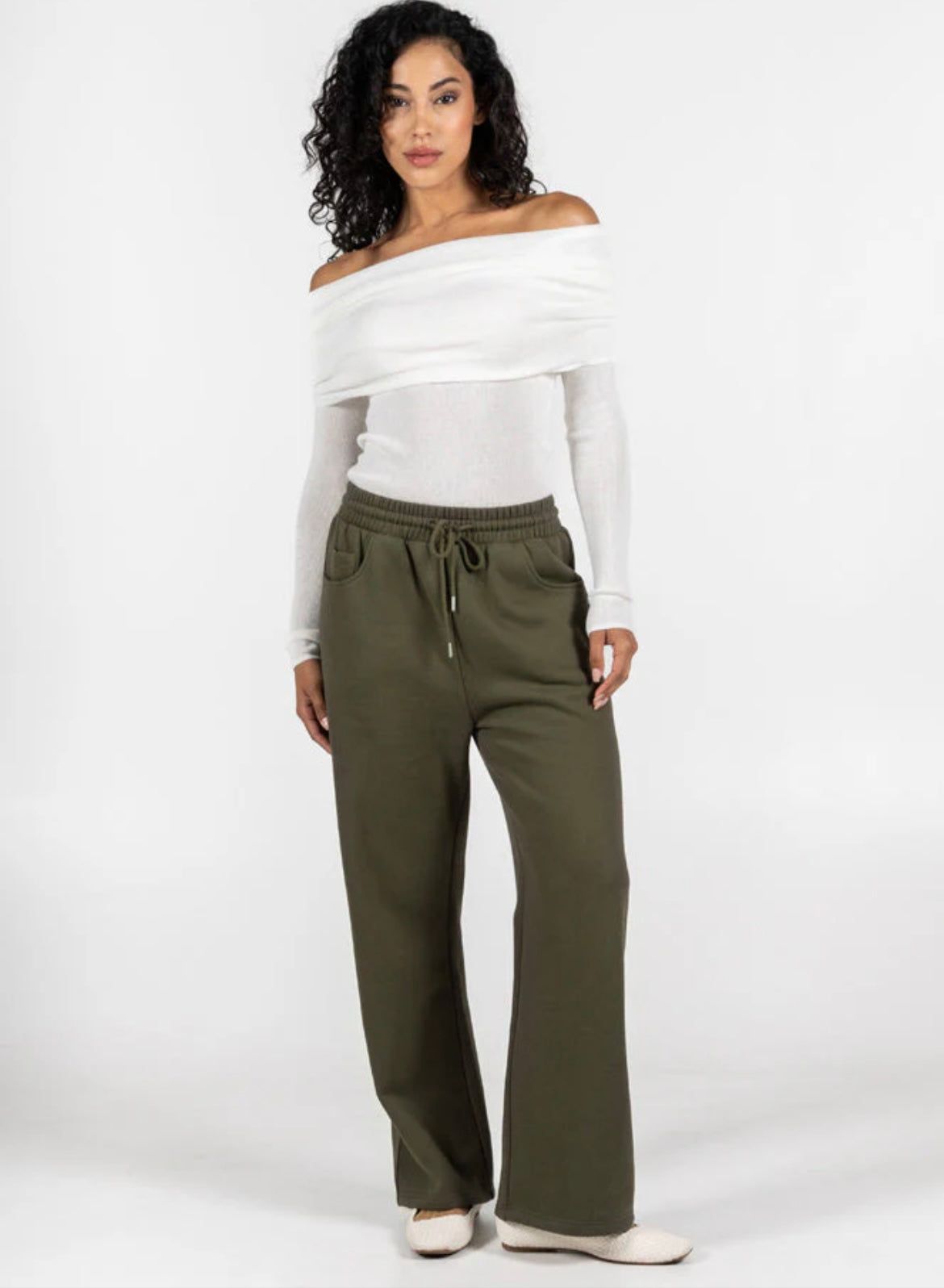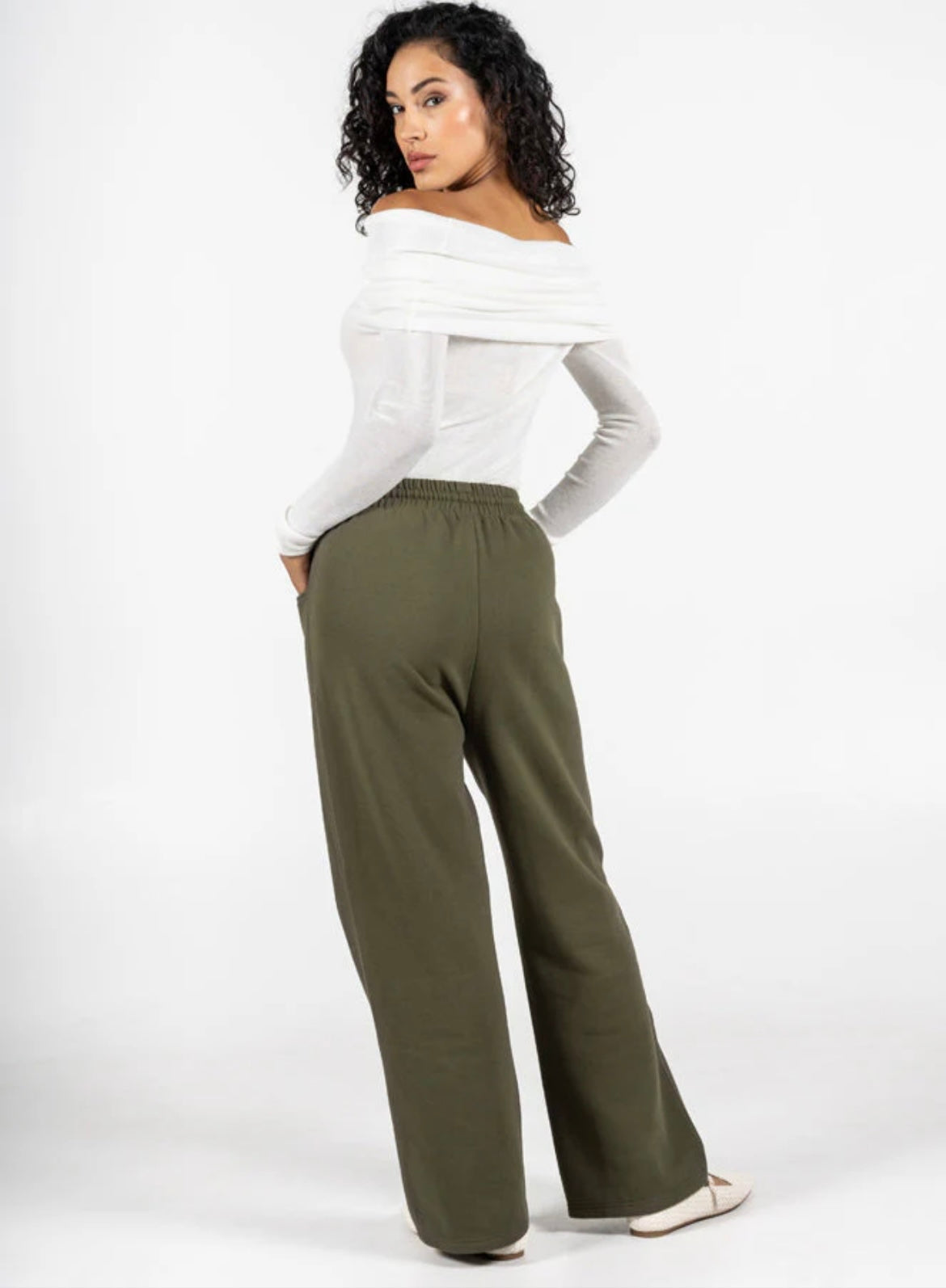 C’est Moi Bamboo-Recycled Poly Cotton Fleece Front Pocket Wide Leg Pant-Olive