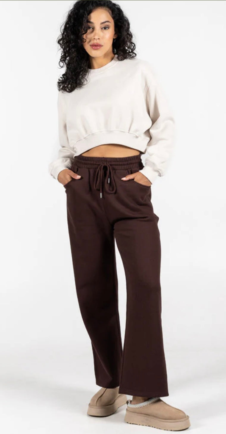 C’est Moi Bamboo-Recycled Poly Cotton Fleece Front Pocket Wide Leg Pant-Brown