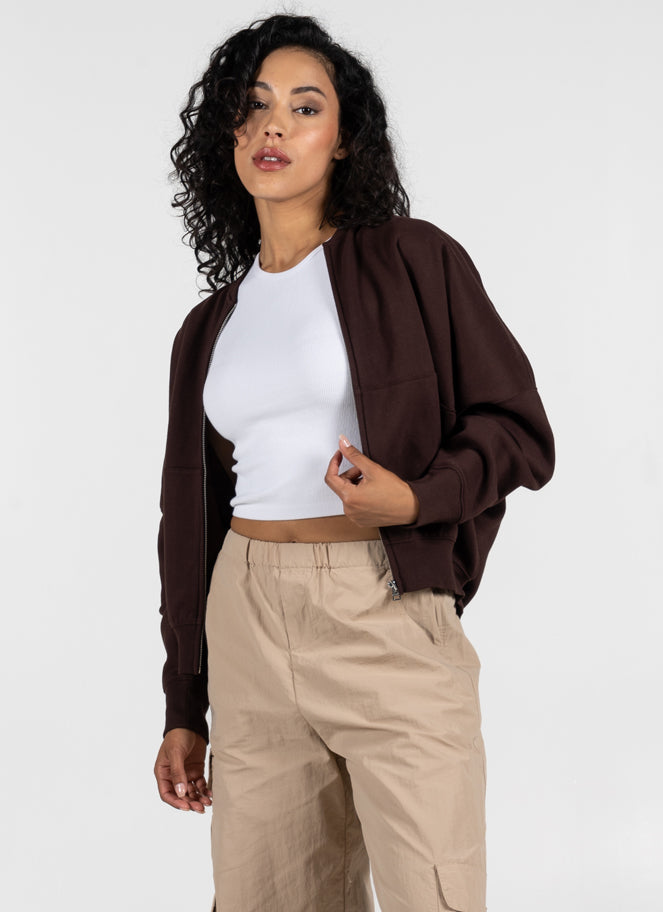 C’est Moi Bamboo-Recycled Poly Cotton Fleece Zip Jacket-Brown