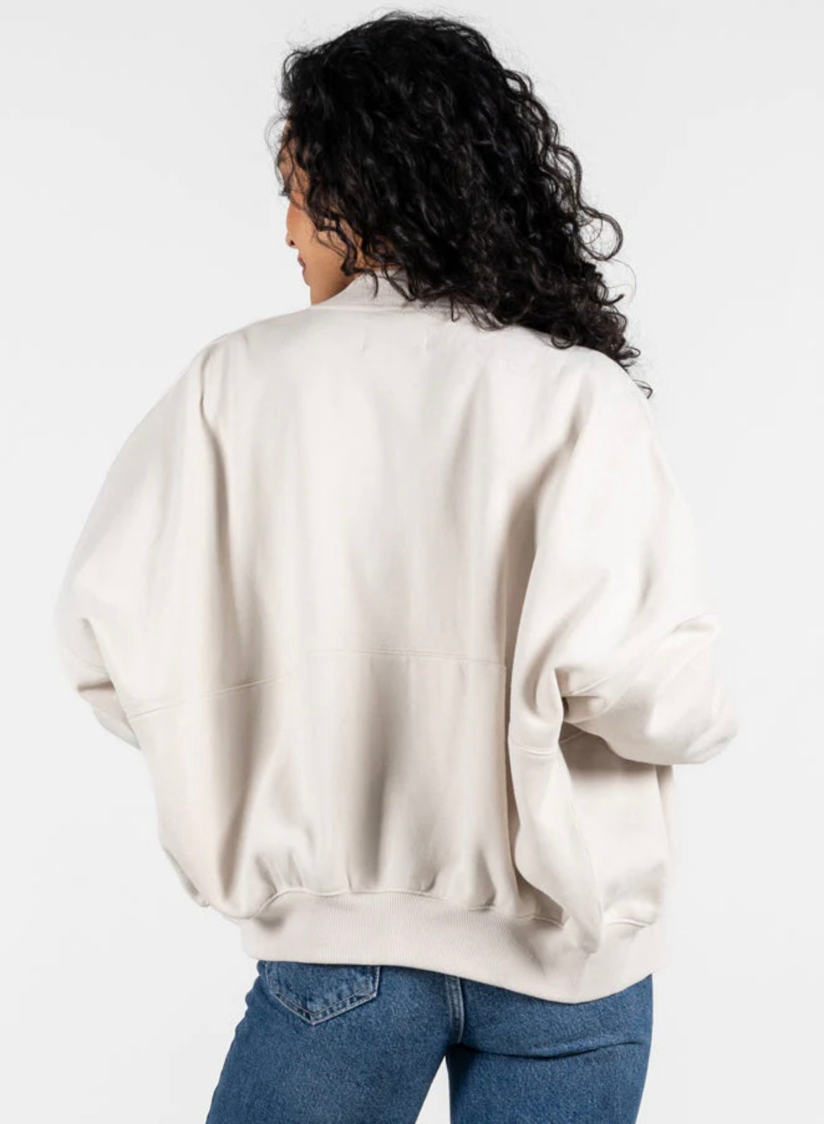 Recycled polyester cotton fleece zip up bomber sweatshirt. Content: 39% Recycled Polyester, 26% Polyester, 35% Cotton