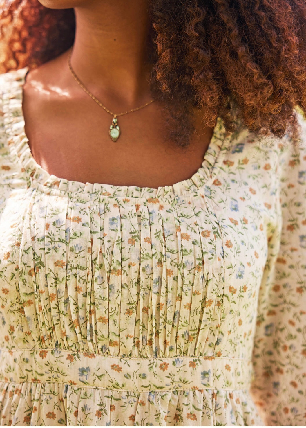<head><meta charset="UTF-8" /></head>Softly hued flowers scatter across the windy canvas of this breathtaking cotton creation, imbued with April's affection for timeless details. The Jane Austen Dress reimagined in a Spring print and shorter sleeves!