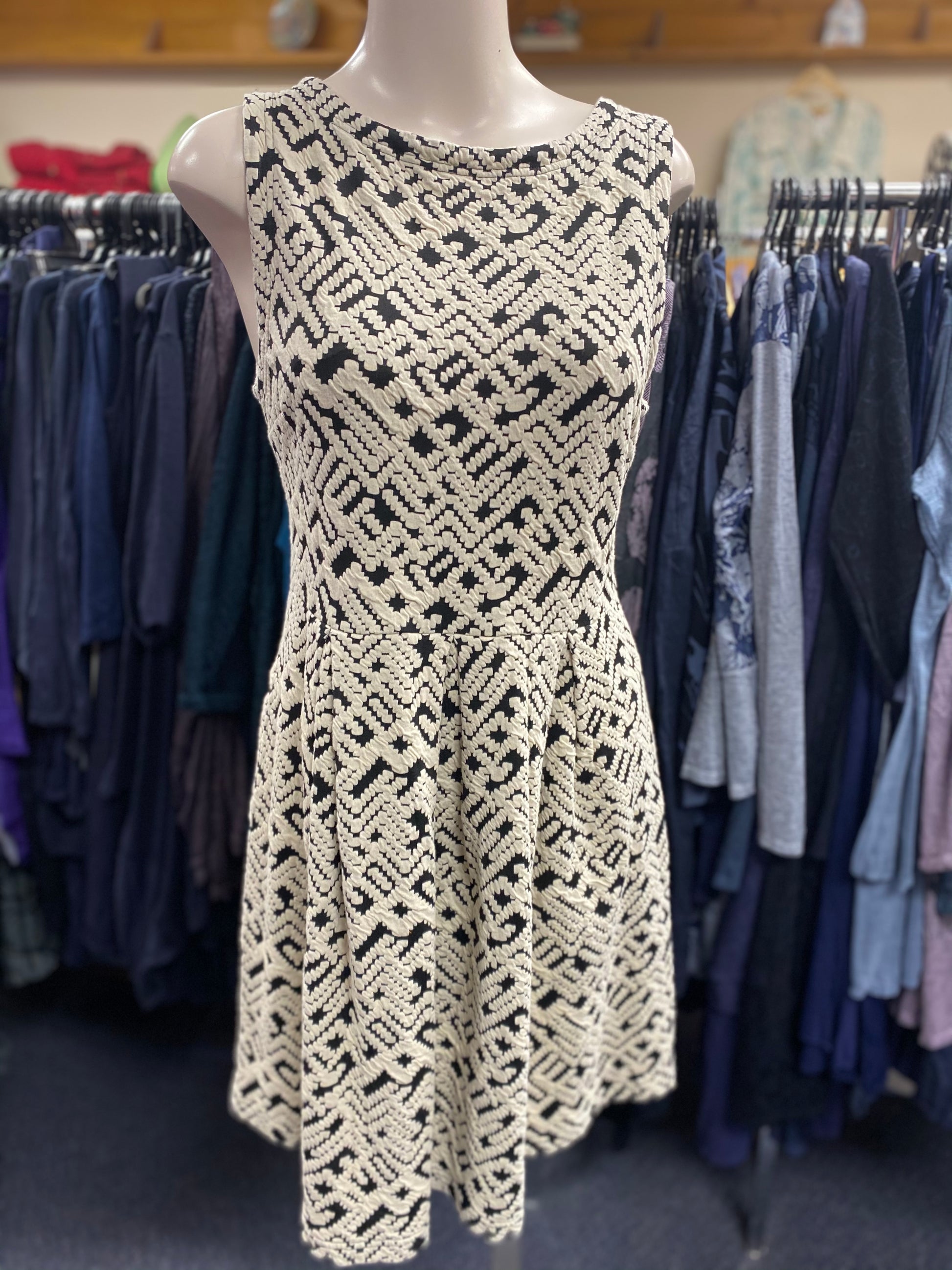 Eveline Street Fit & Flare Short Dress-Cream Geometric