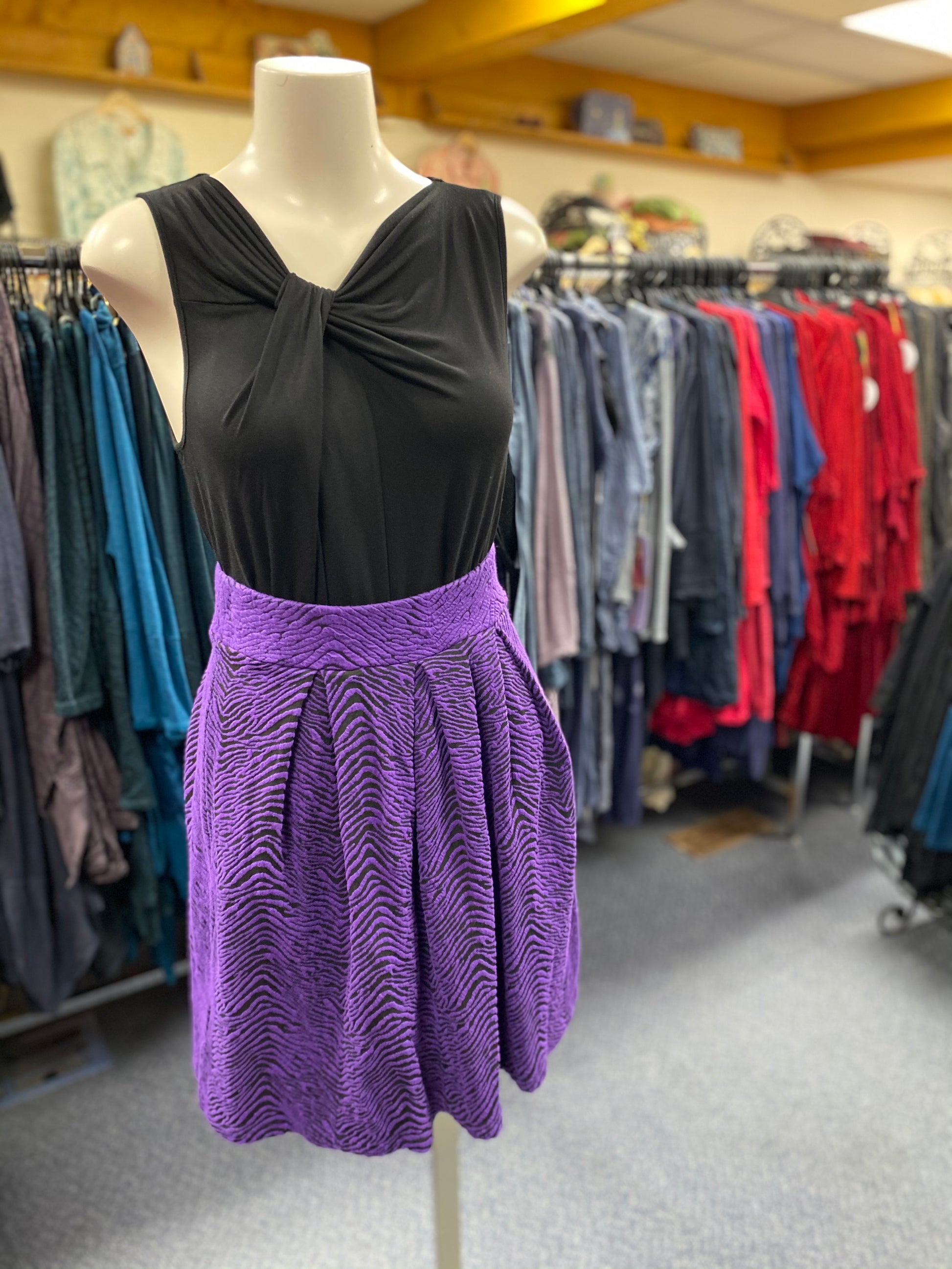 This Eveline Street skirt is made of 68% cotton 27% nylon and 5% spandex. It is stretchy and comfy and fits beautifully over the body with a flare starting at the waist to just about the knee. This cotton is super soft and gets softer with wearing. Please note we sell the matching shrug separately and also a fit and flare dress in the same fabric. Machine wash, lay flat to dry.
