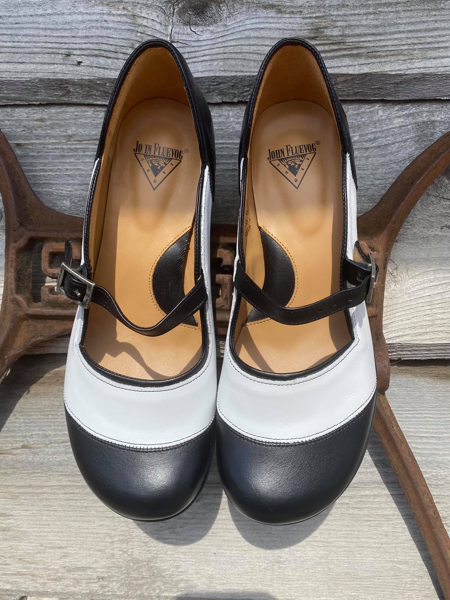Custom Fluevog Sandra in black and white. Yes we had our own run made of these!