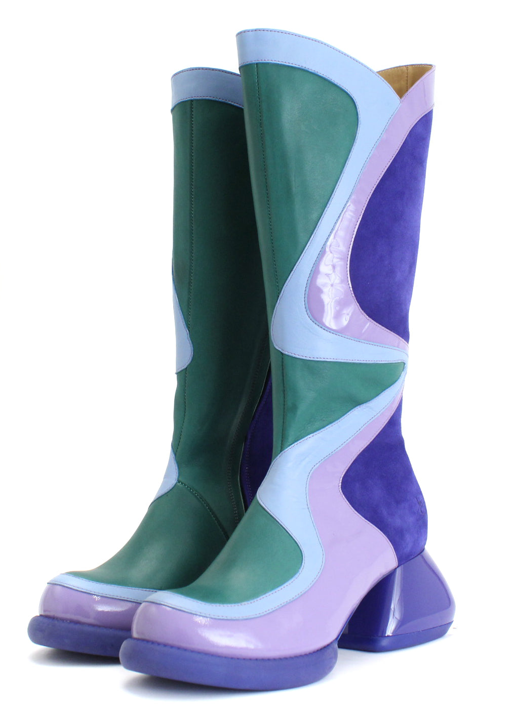 Fluevog Warhol Boots-Purple/Lavender/Light Blue/Green