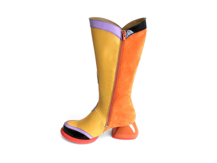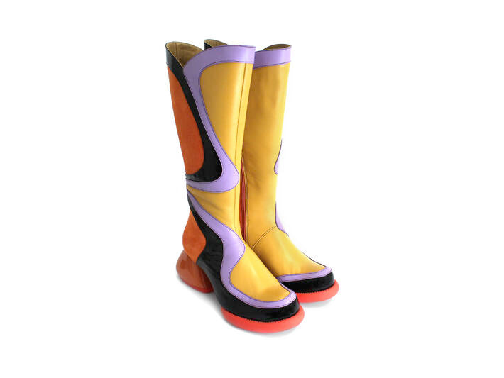 Another visionary member of our ‘60s-inspired F-Trip Family, these groovalicious boots stand out with a bubbly toe bump, angled heel and bright pop swirl. Like the iconoclastic artist Andy Warhol, who started his career as a shoe designer, they turn the ordinary into something extraordinary and are guaranteed to deliver more than 15 minutes of fame. Take an F-trip!