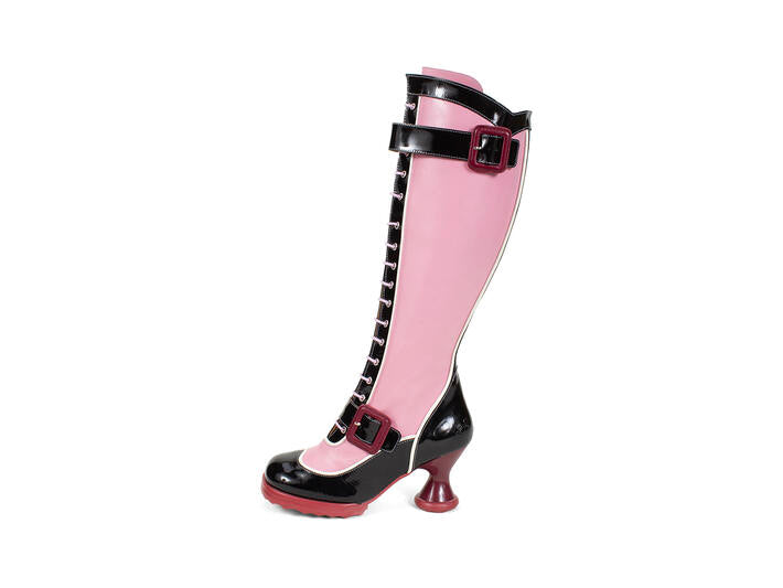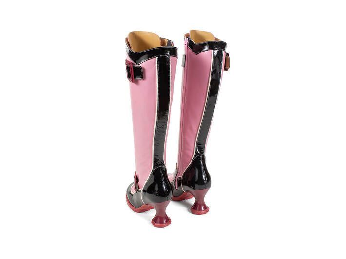 With a name like Sugarcandy, you can be certain that you’re in for a treat. Modelled after the Mini Hotcakes and named after a lovely Fluevoger some of you may know from the Flummunity, The Sugarcandy is a sensationally sweet tall boot with decadent details in all the right places. From its oversized leather piping and playful rubber soles, to its adorable leather wrapped buckles, The Sugarcandy invites guilt-free self-indulgence. Go on, fall in love. We dare you!