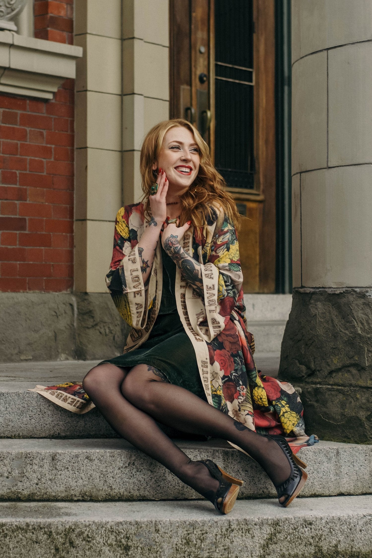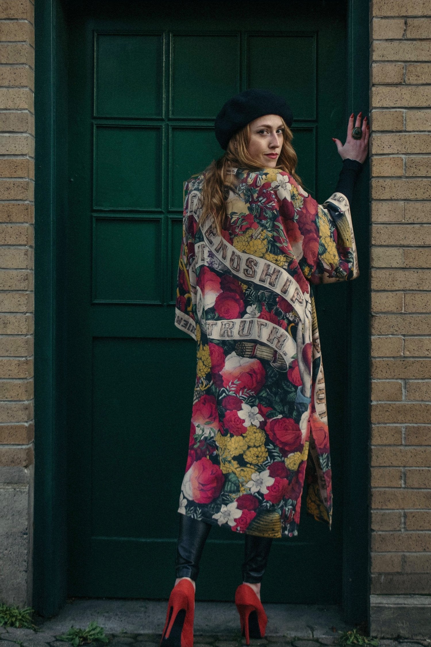 It takes a bold heart to live your truth. To keep reminding yourself that love is the answer, even on your hard days! We created this eclectic, super cool opera-length kimono from an 1880s print unearthed in a library archive, and adapted the utterly charming wood-grain lettering to build the trim. The result is one of our favourite pieces in the collection: beautiful and completely unique, with a lot of romance, and a touch of rock and roll.