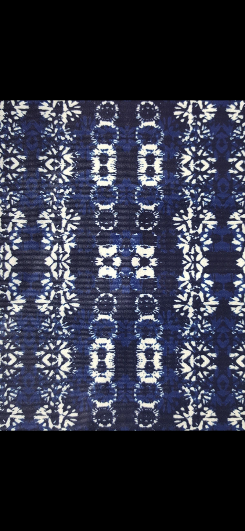 Ice: Indigo blue with a crystalline pattern of white. This print takes classic navy & white to a new level. Dress up in Ice and look twice as nice!