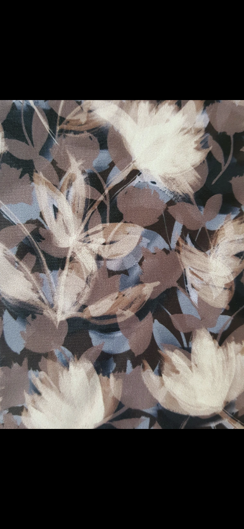 Mystery: whimsical cream blossoms, warm clay-grey petals and a glimpse of palest periwinkle are a stunning combo on a black background. Just order it. Mystery solved!