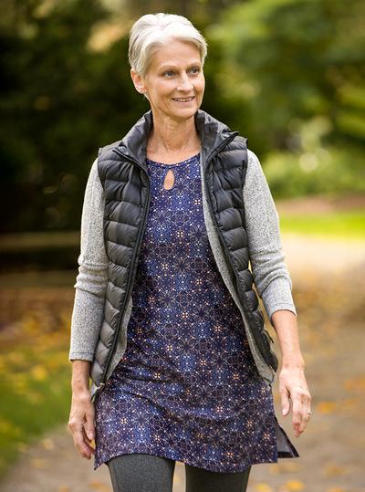 - Scooped neckline exercise dress with back pocket that never gets in the way.