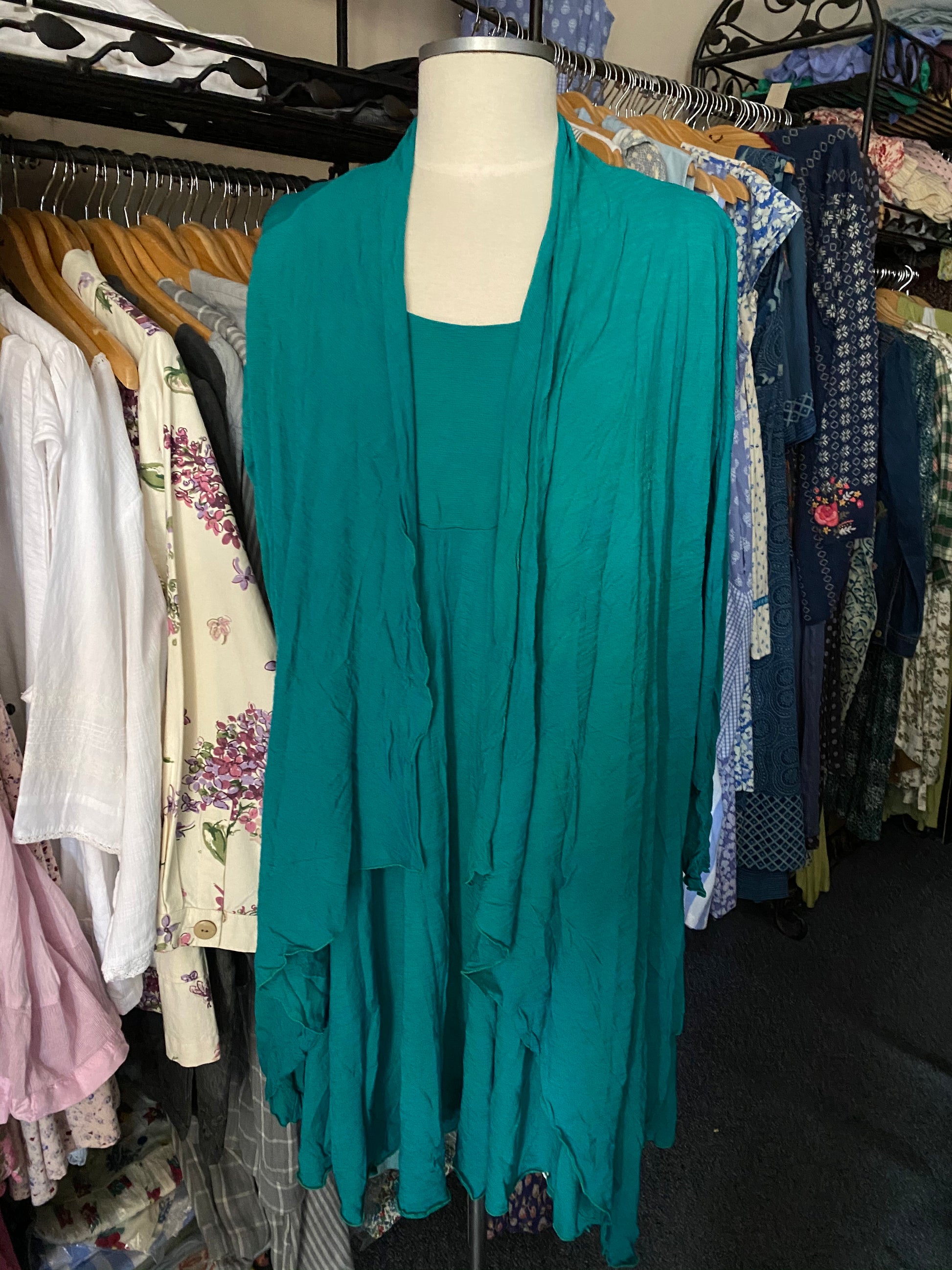 EVELINE STREET ONE SIZE MERINO LONG CARDI-GREEN FLASH GREEN