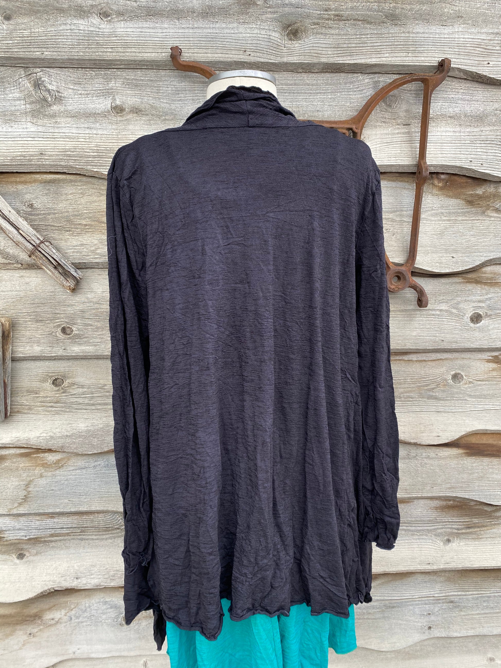 EVELINE STREET ONE SIZE MERINO LONG CARDI-BAABAA BLACK SHEEP