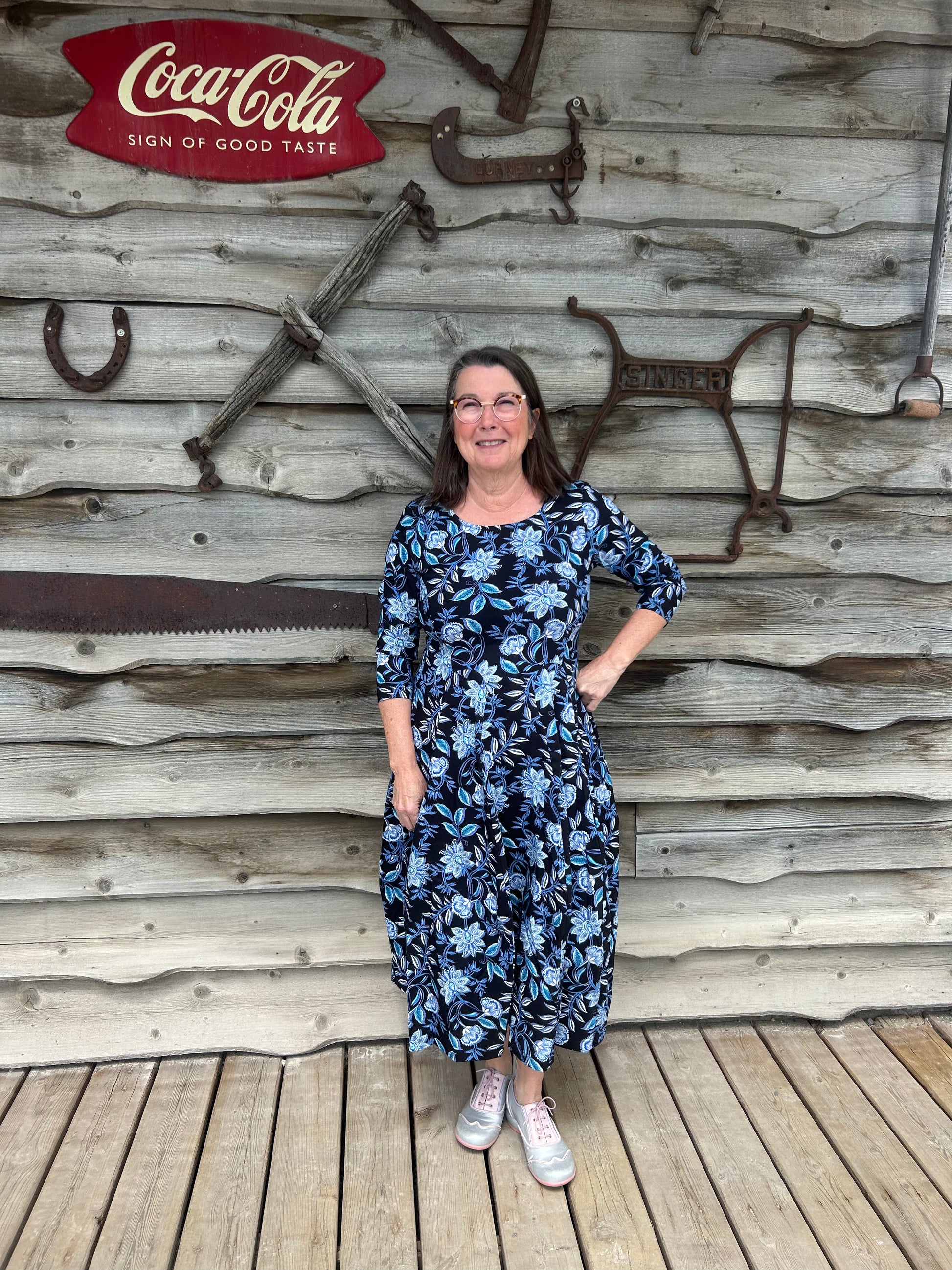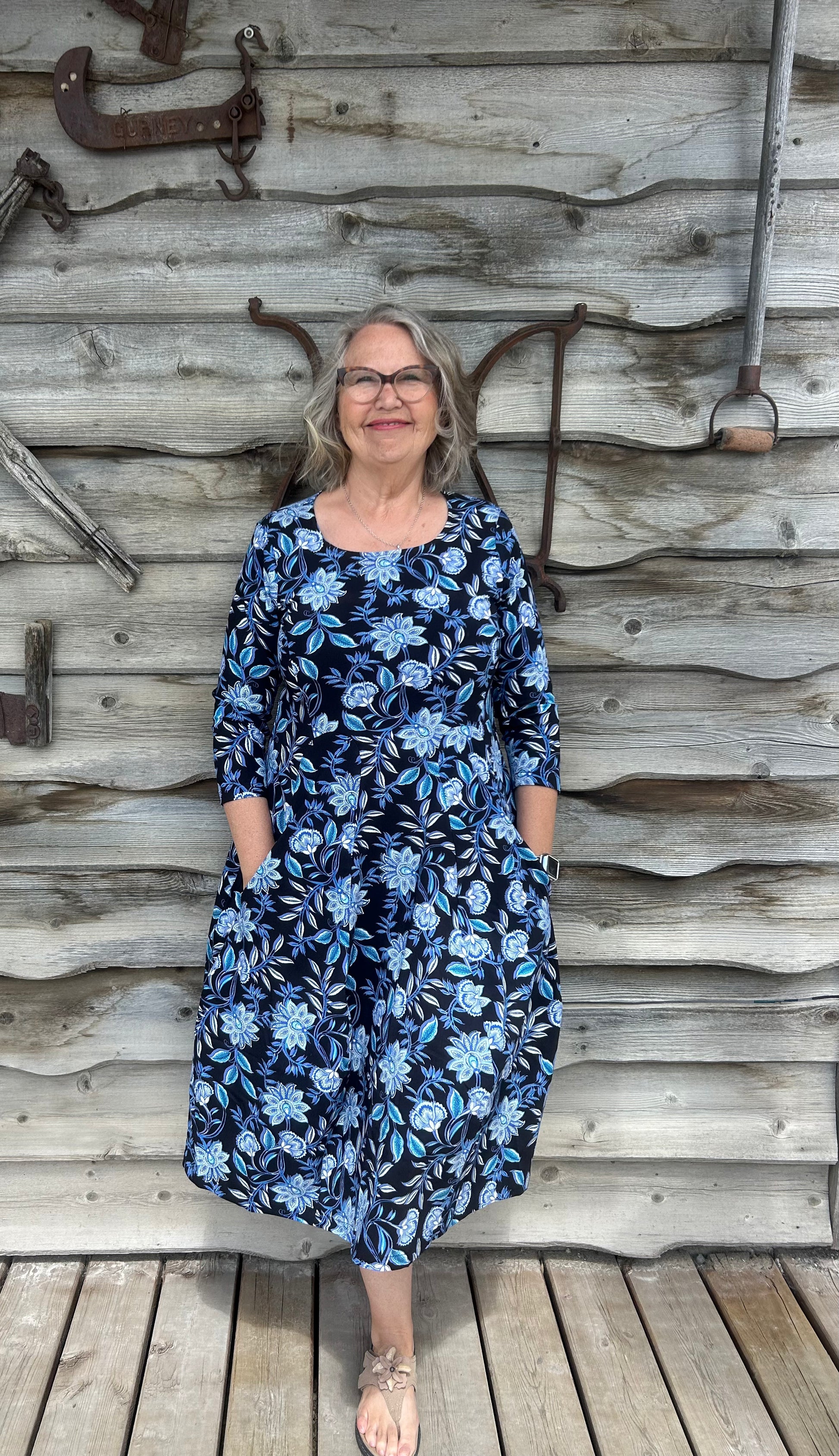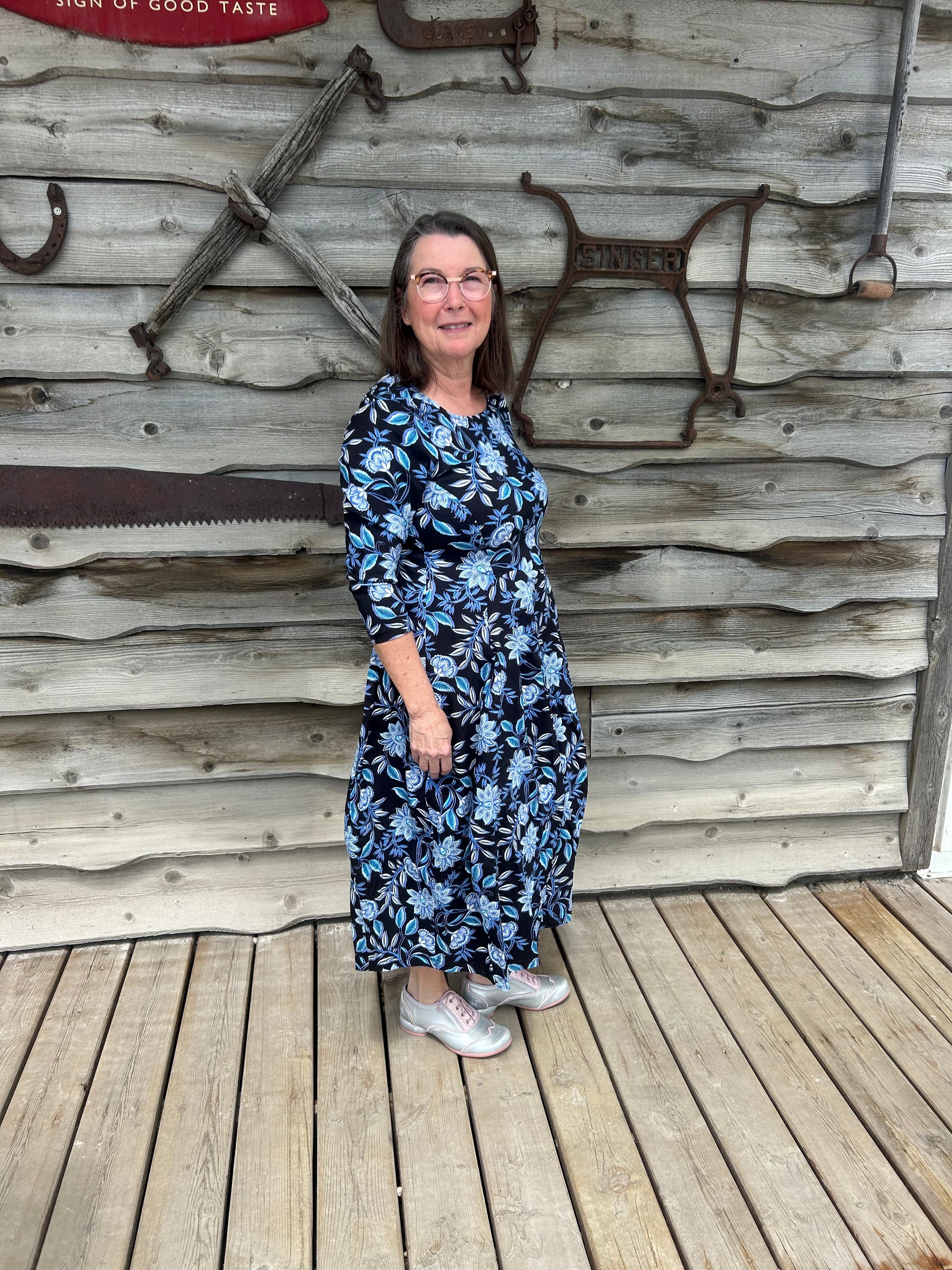 Valia Castella Dress Black with Blue Floral Custom Made Exclusively For Eveline Street